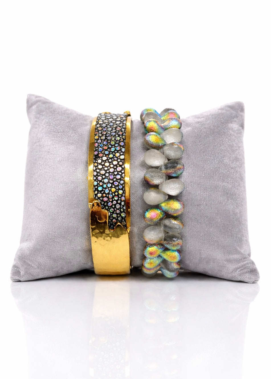 Filled with meaning, this hand-beaded bracelet set features blush pearls paired with polished stainless steel beads and accented with hematite spacer beads for a subtle contrast. A textured gold cross charm completes the look, serving as a beautiful reminder of faith you can carry with you every day. This set is available in silver or gold.