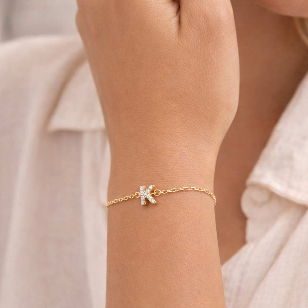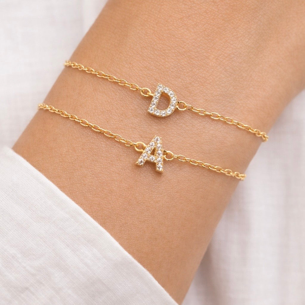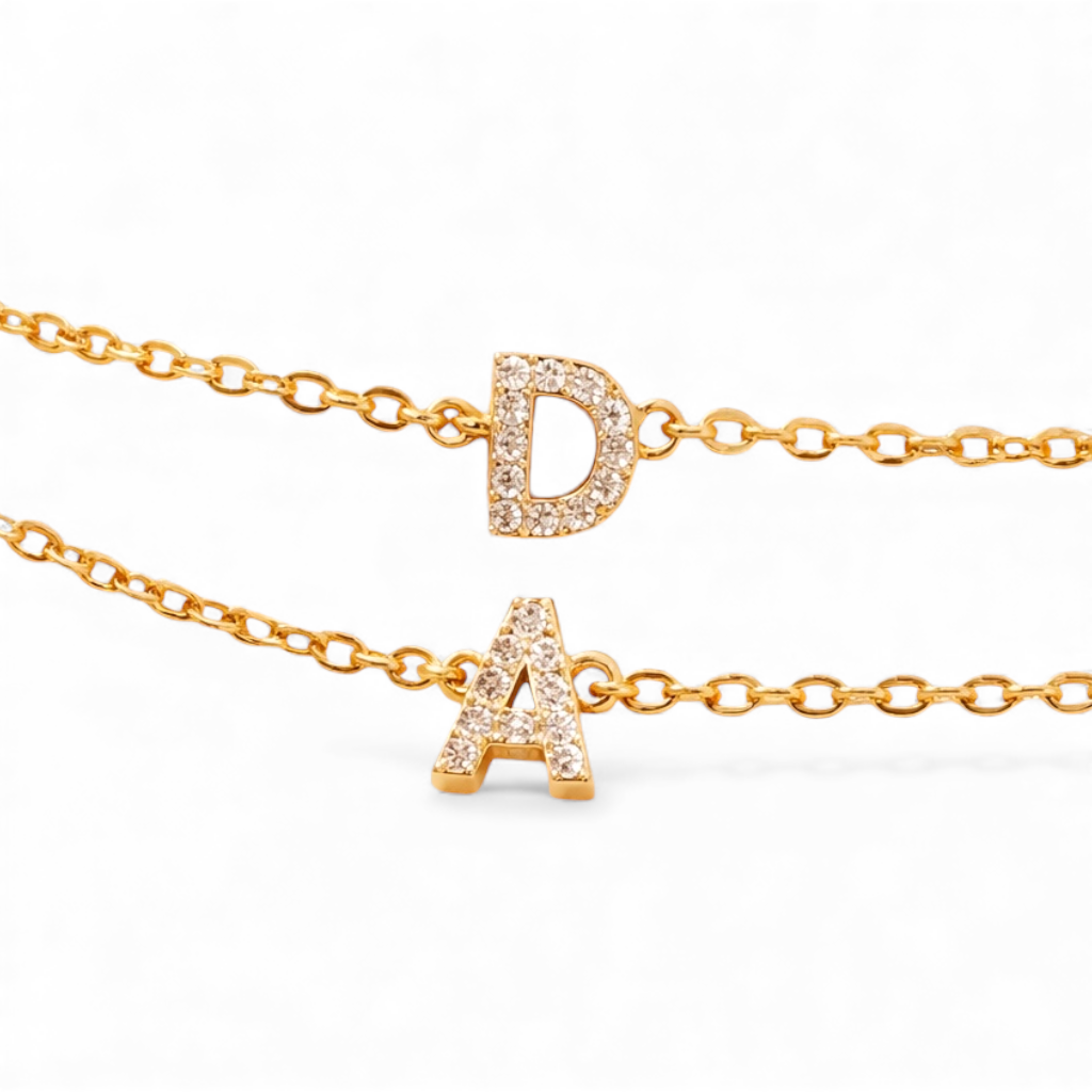 • Gold overlay stainless steel pavé initial