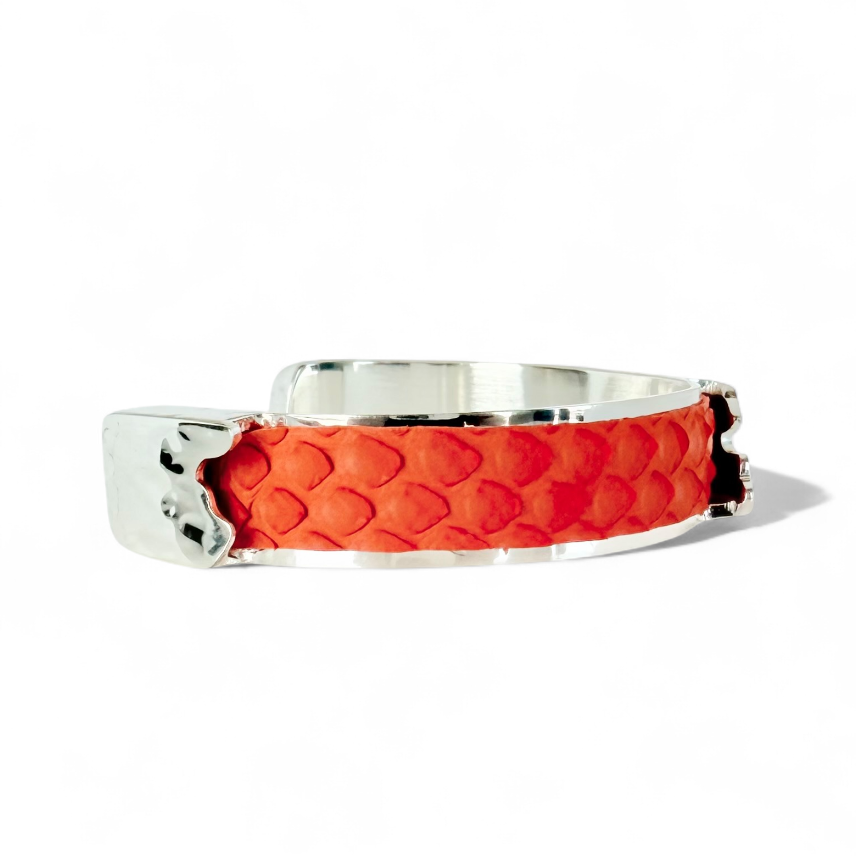 • .5 Dallas Silver hammered brass plated cuff with genuine python