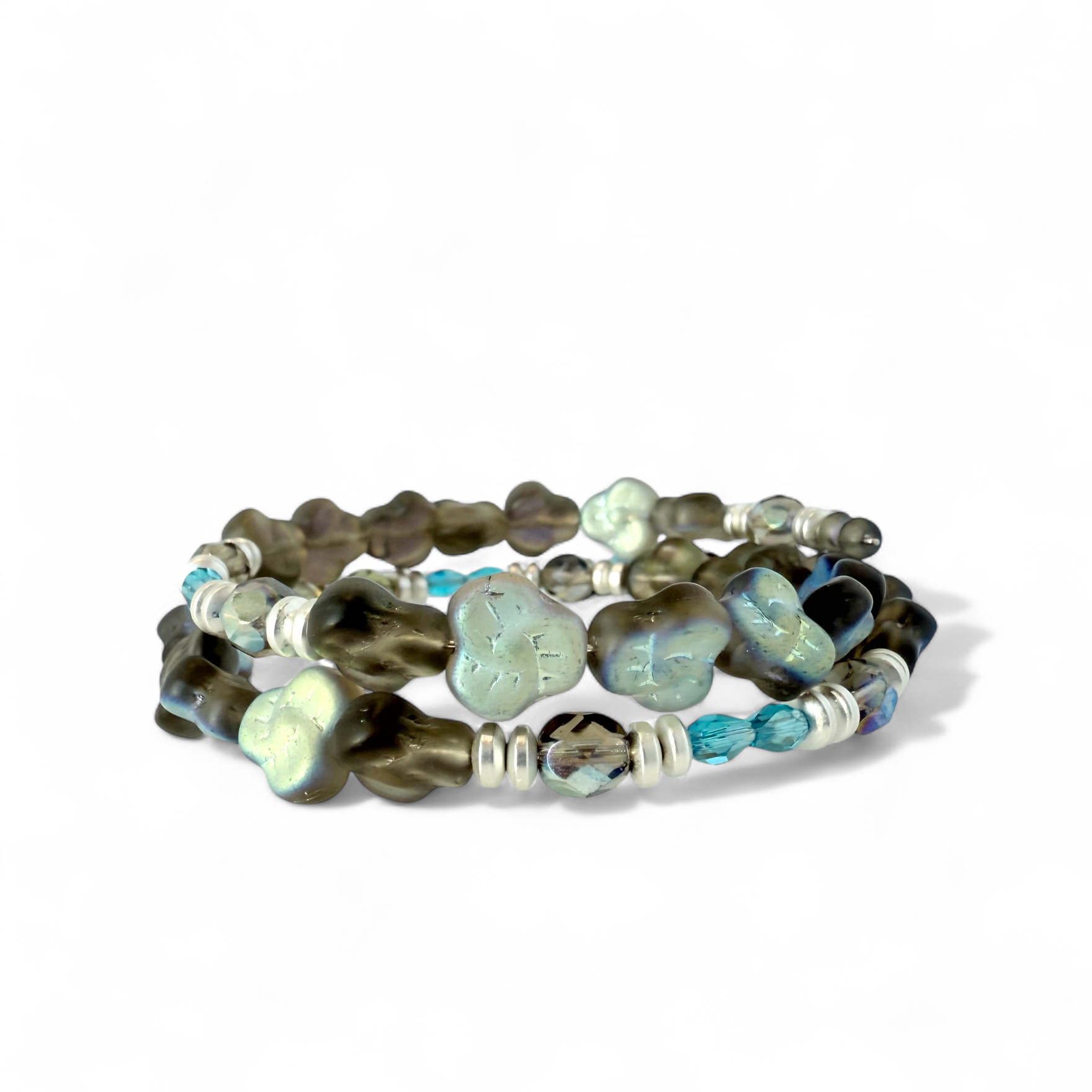 • Czech glass flower-shaped beads in luster sheen